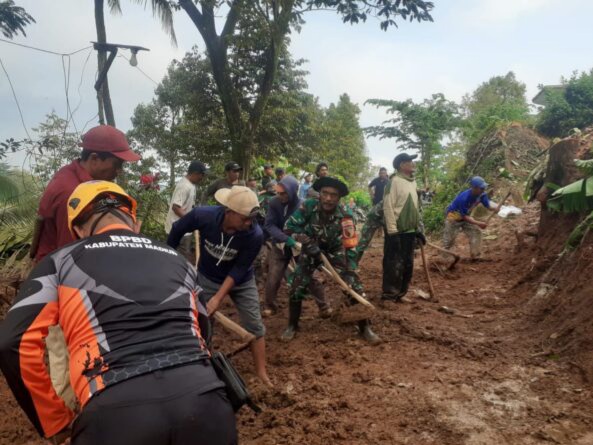 Pemulihan akses dilakukan melalui kerja sama antara aparat TNI dan warga setempat. Mereka bergotong royong membersihkan material longsor secara manual hingga jalan kembali terbuka.